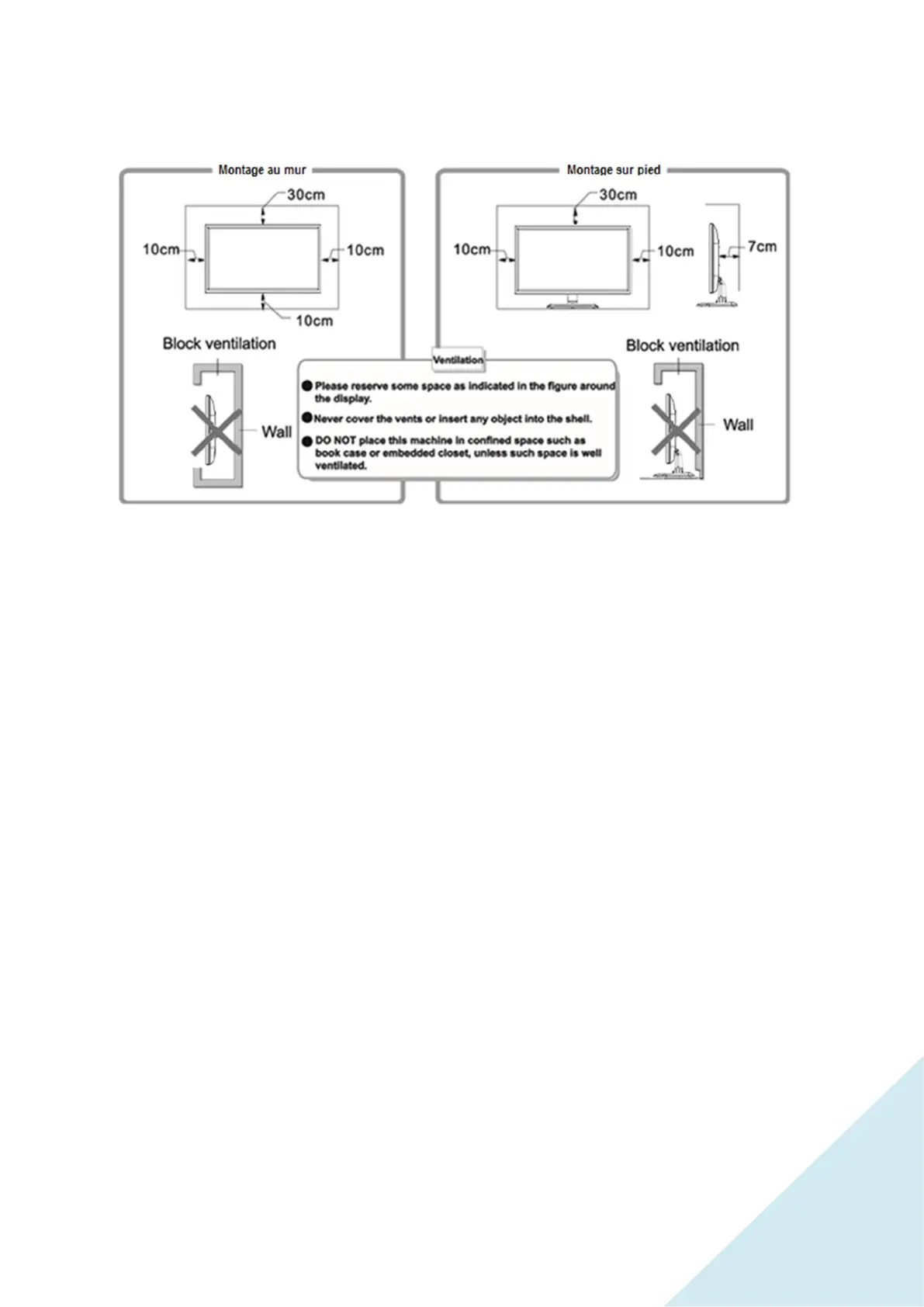 aucun cas couvrir, ou placer à proximité immédiate d’un objet. Pour assurer une bonne ventilation du moniteur