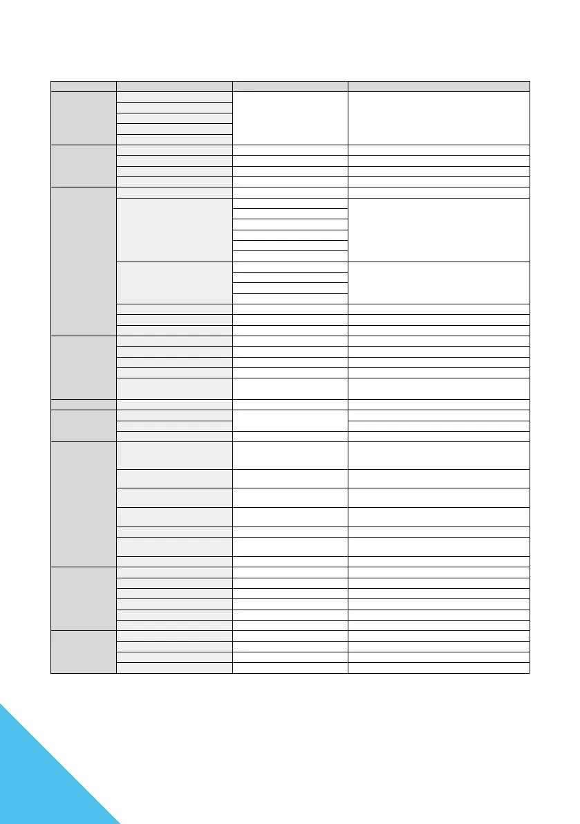MENU FUNCTION ADJUSTABLE VALUE COMMENT