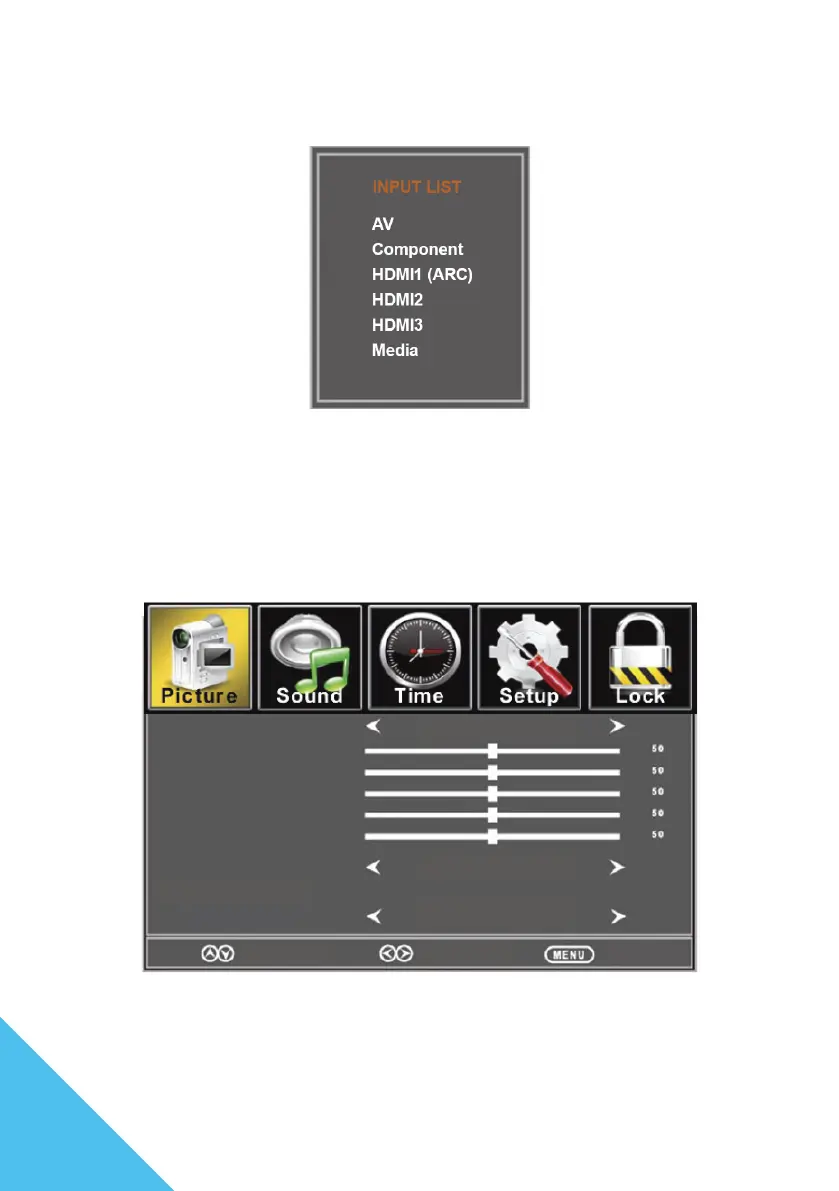 Utilisez les boutons ▲/▼ de la télécommande ou le bouton “Input Switching” pour naviguer et