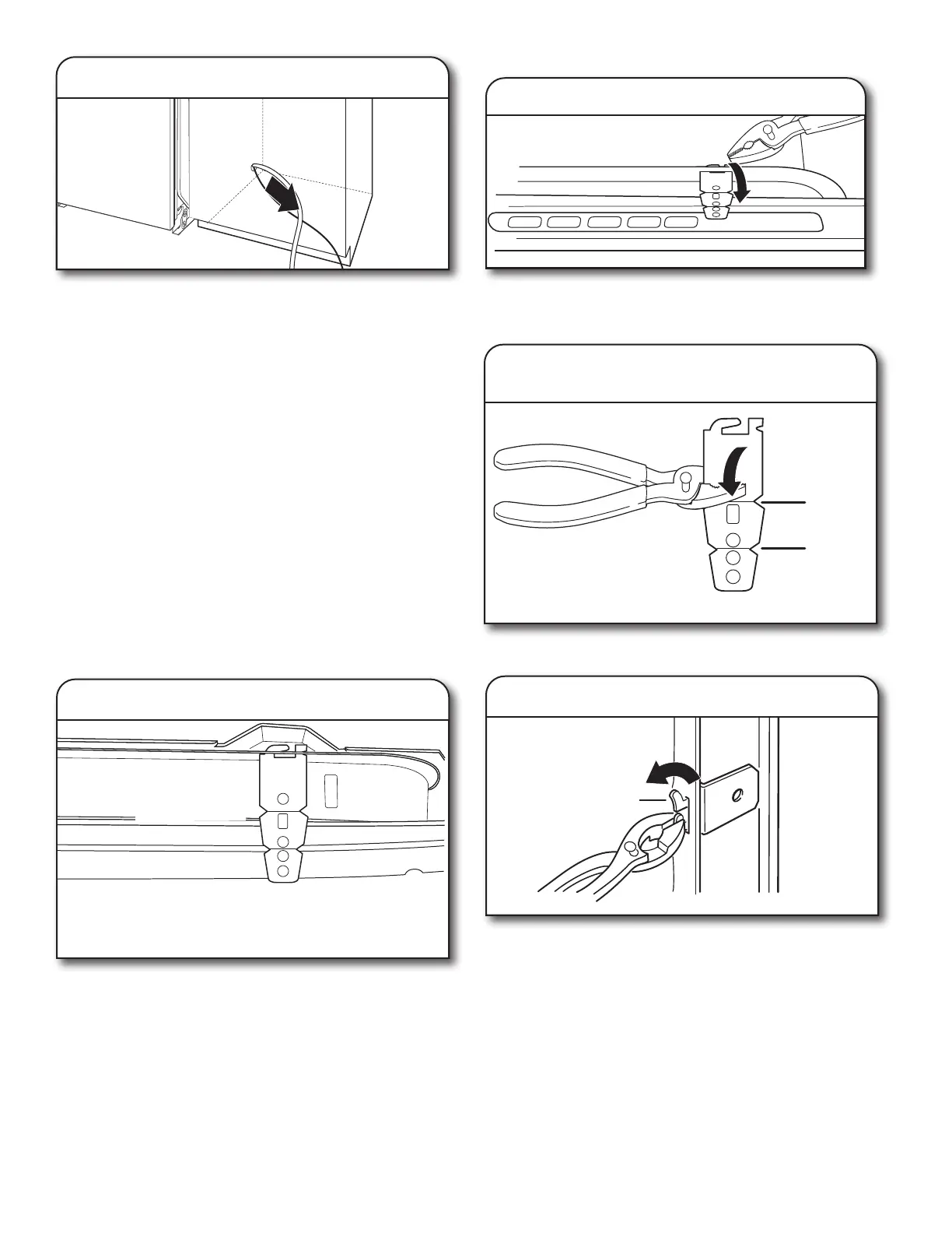 Push bracket into slot on the side of dishwasher, and bend tab in