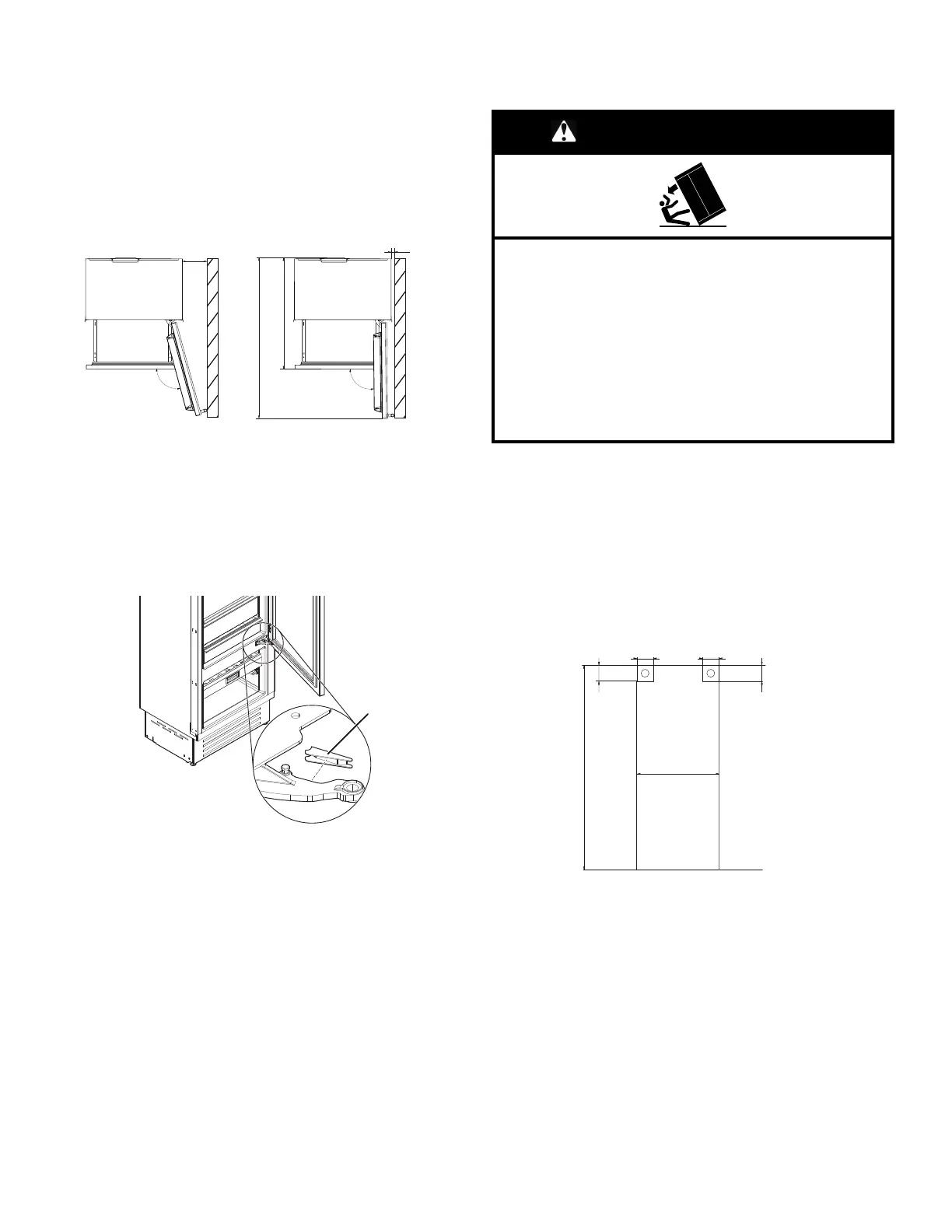 4 po (15 mm) entre le côté du réfrigérateur et un mur d’angle.