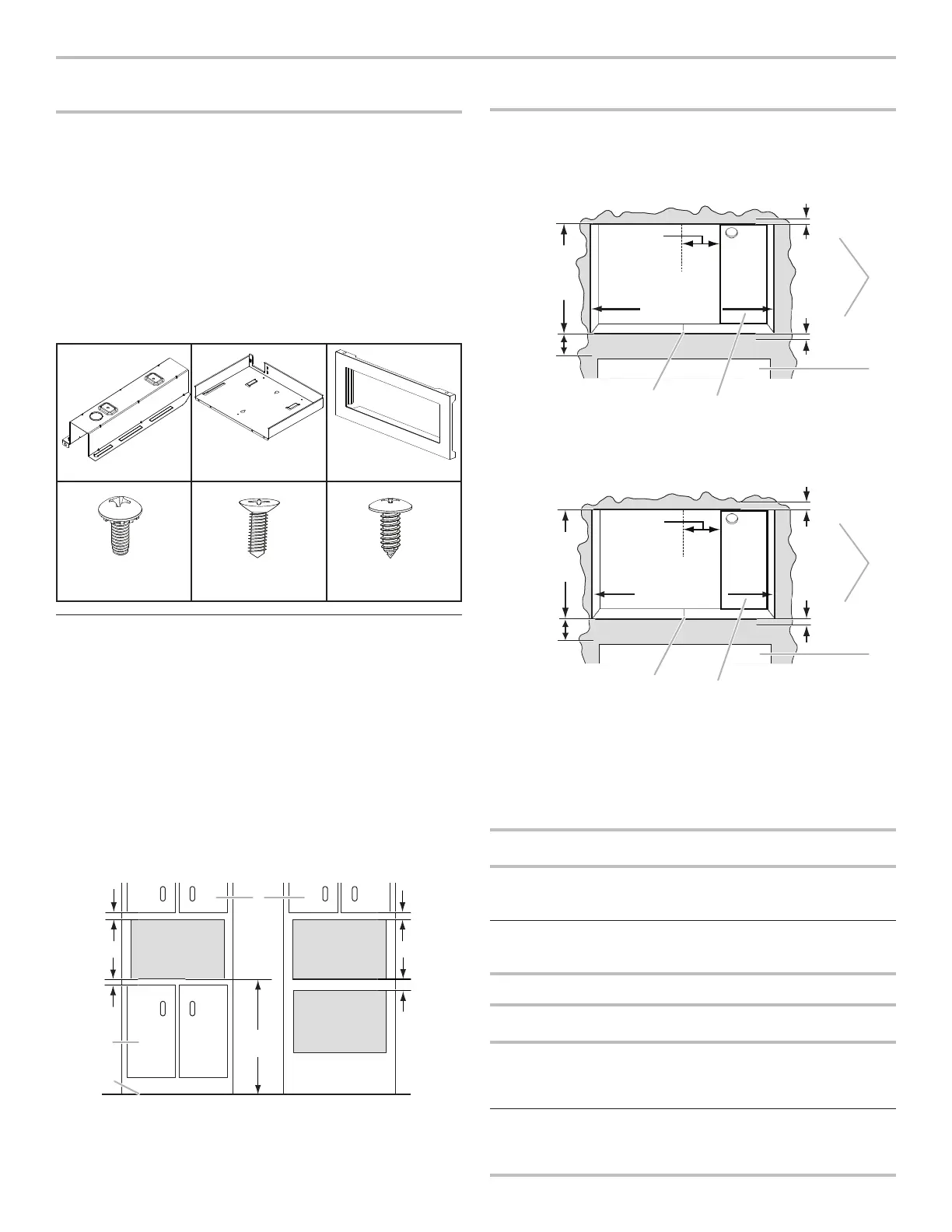 plancher de l’ouverture d’encastrement du four à micro-ondes.