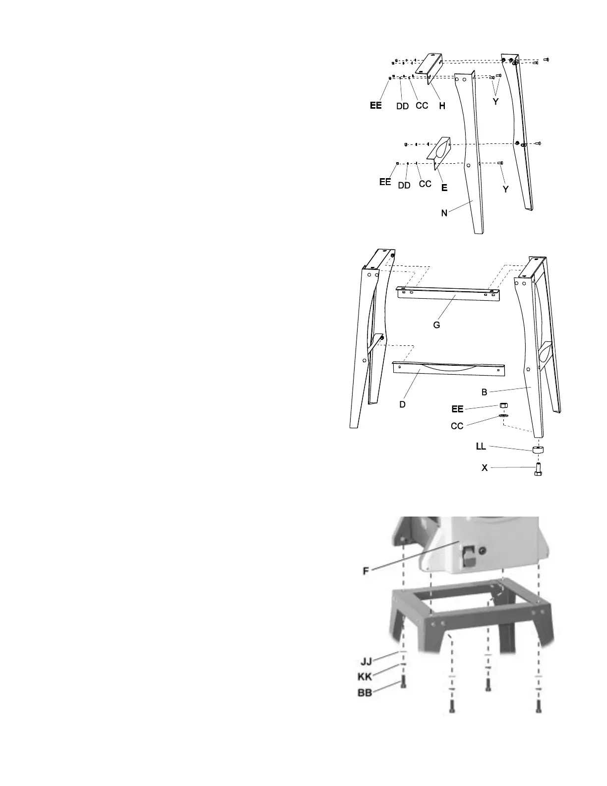 1. Place the Jointer-Planer (F) onto the assembled
