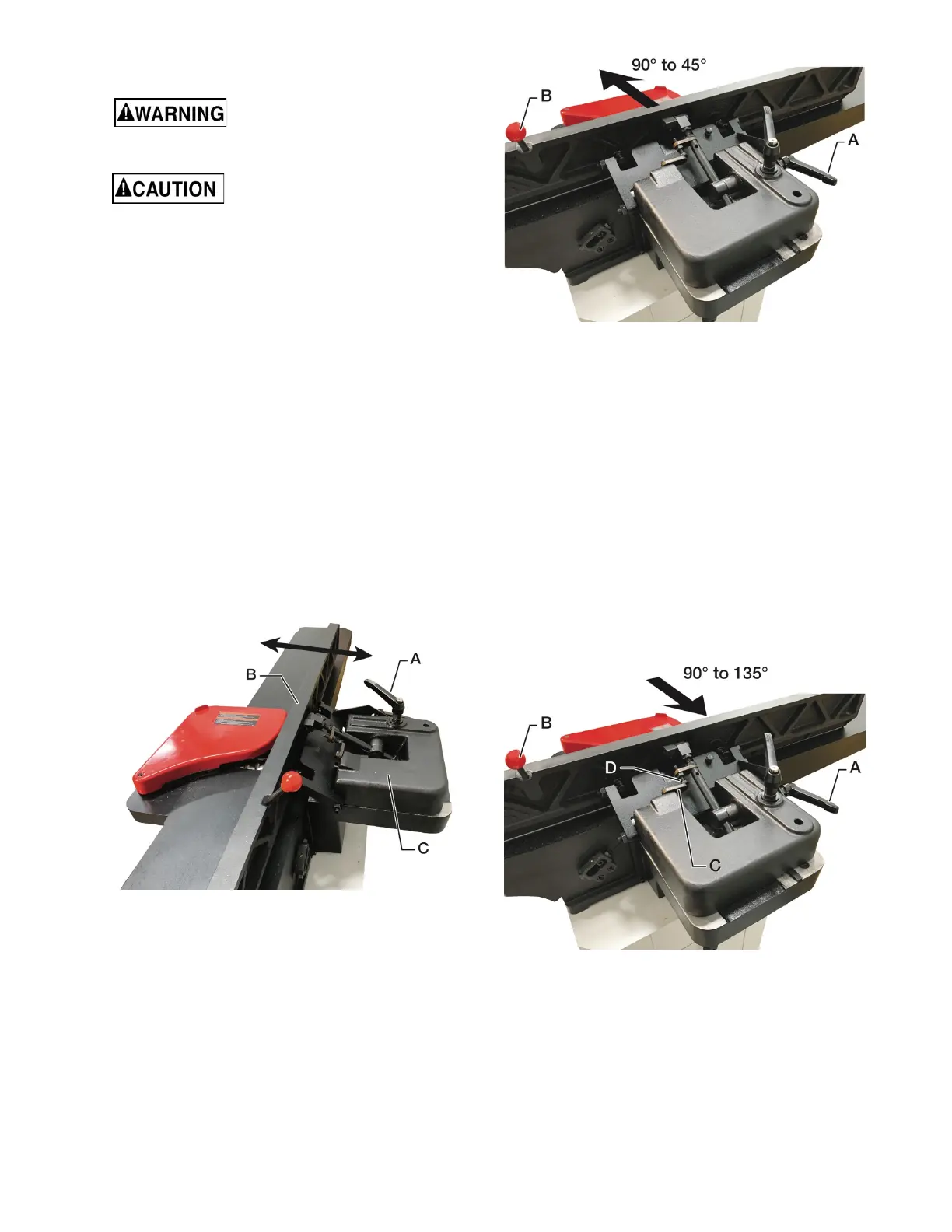 4. Swing fence 90° stop plate (C) up to allow 90°