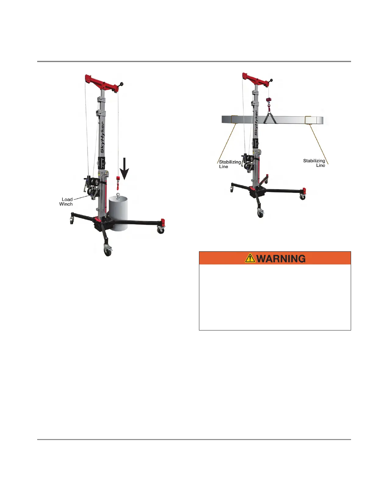 winch handle smoothly and evenly. If stabilizing lines are