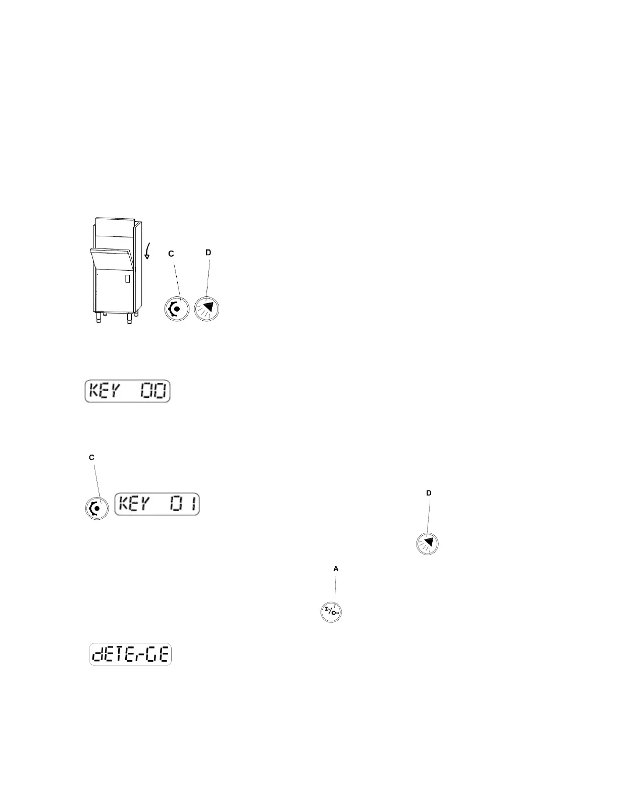 Turn off the machine, open the door and keep the C and D buttons pressed for 5 seconds.