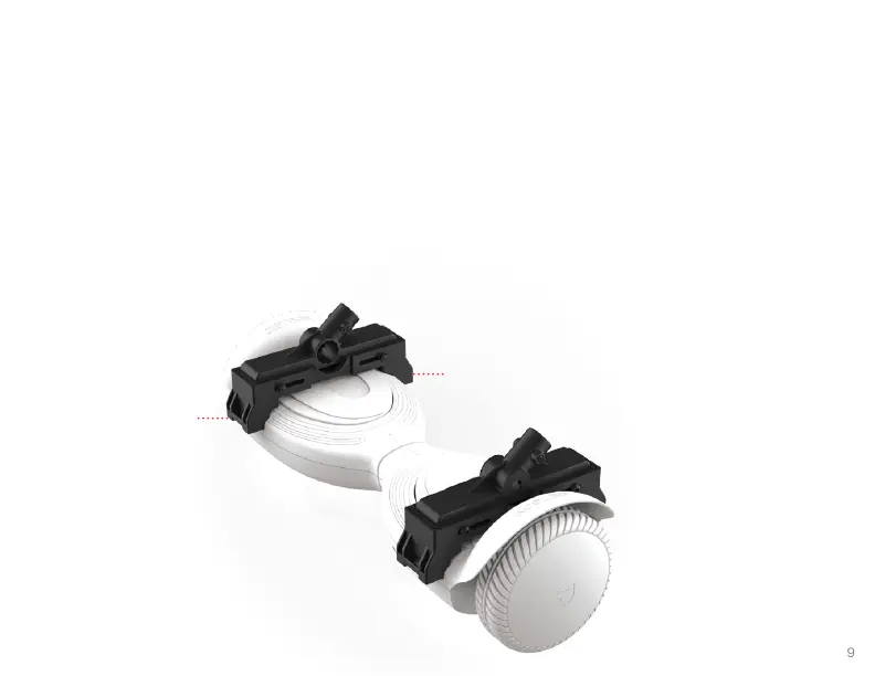 • THE JETKART®’S HANDLE BRACKETS REST ON THE LEFT AND RIGHT FOOTPADS OF THE HOVERBOARD.