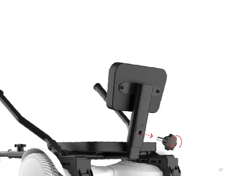 1. TWIST THE KNOB ON THE REAR SIDE OF THE SEAT BACK SUPPORT COUNTERCLOCKWISE TO LOOSEN AND REMOVE IT.