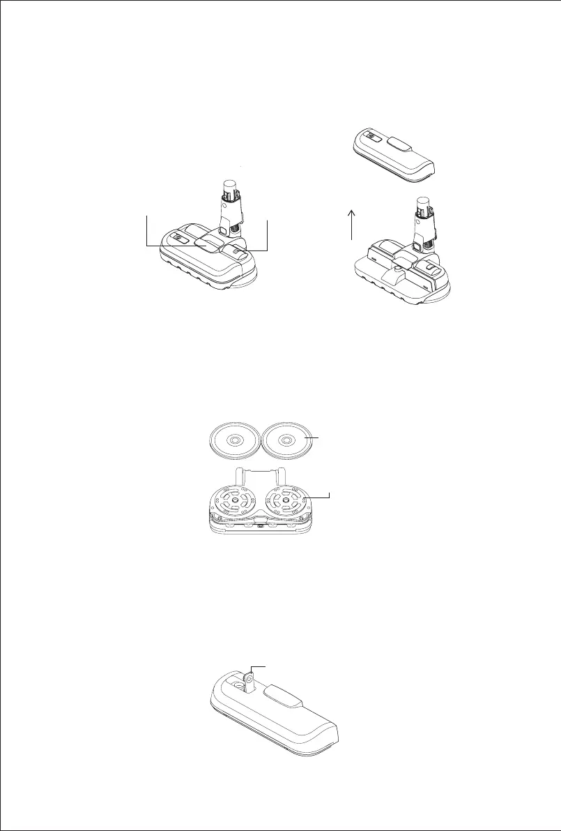 1. Align the central hole of the mop with the turntable, and attach it to the Velcro on turntable for