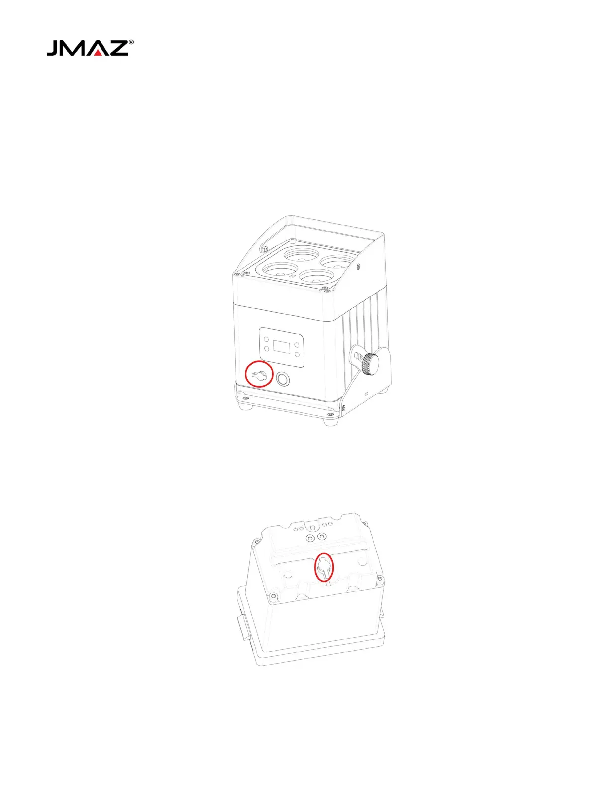 Plug the provided charger into the DC Charging port on the front of the MAD PAR RB.