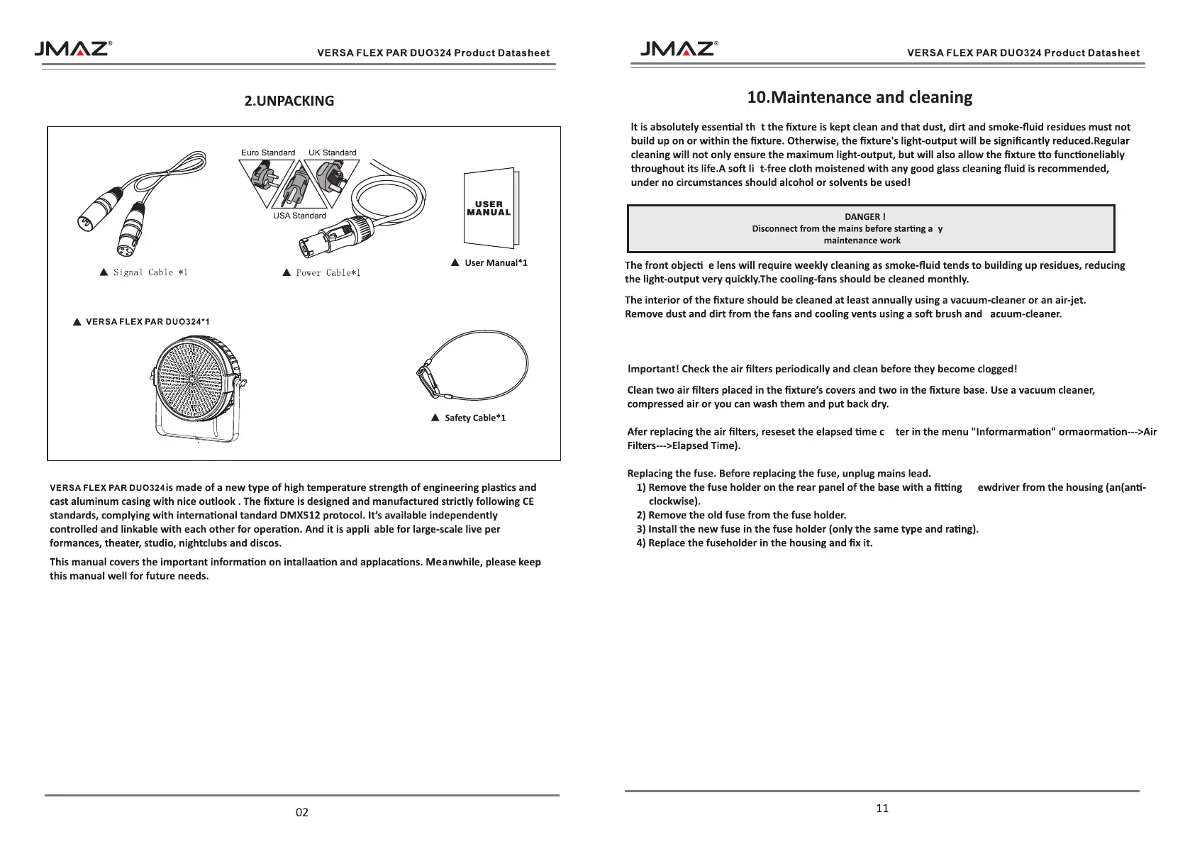 Bekijk gratis de handleiding van JMAZ Versa Flex Par DUO324, stel vragen en lees de antwoorden op veelvoorkomende problemen, of gebruik onze assistent om sneller informatie in de handleiding te vinden of uitleg te krijgen over specifieke functies.
