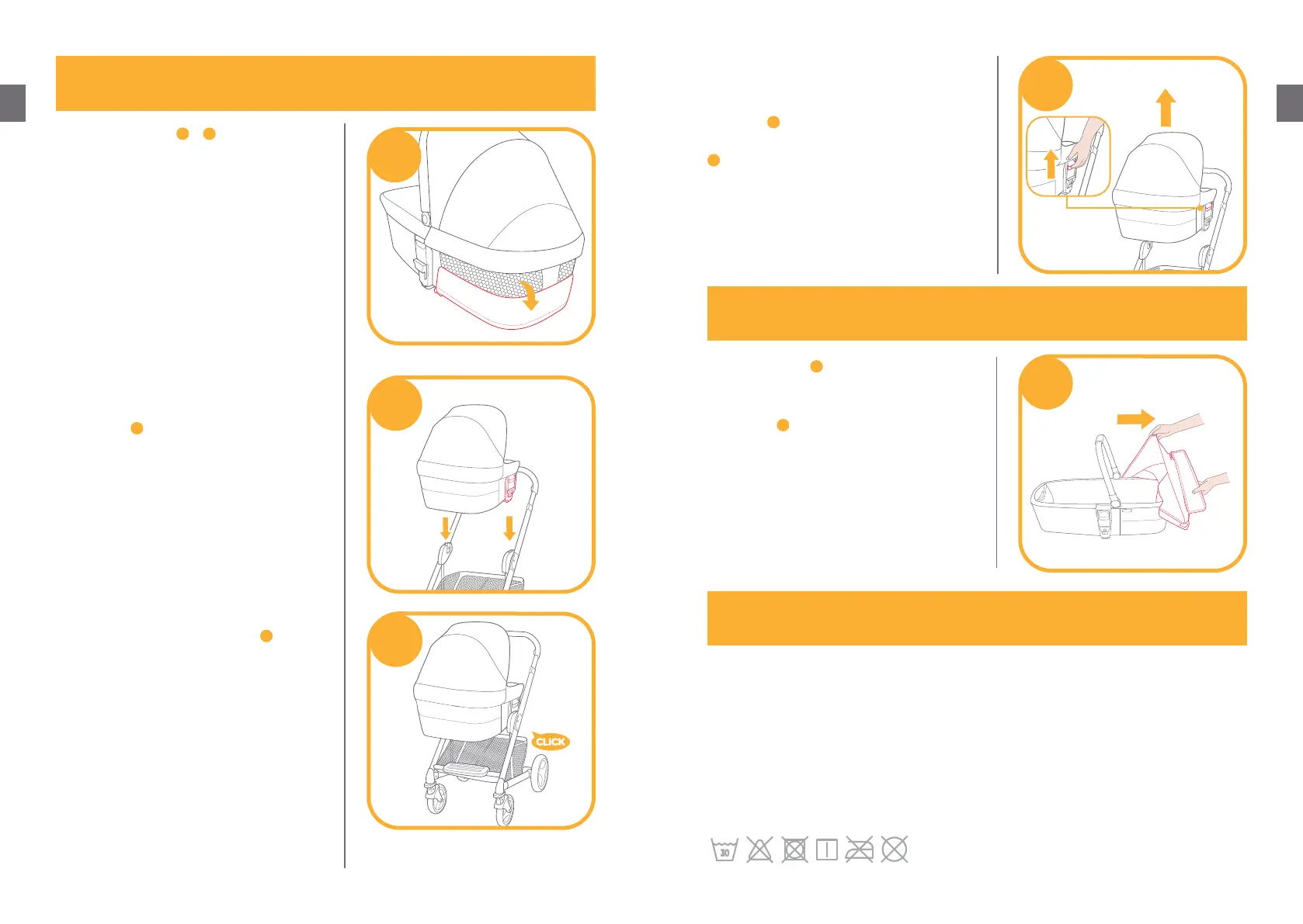 1. Rimuovere il materassino dalla culla portatile ed l'imbottitura dalla federa. Pulire