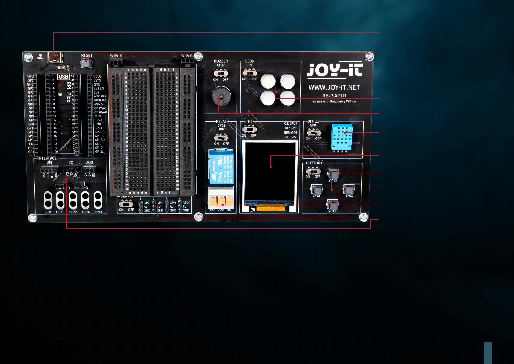 Bekijk gratis de handleiding van Joy-it RB-P-XPLR-SET, stel vragen en lees de antwoorden op veelvoorkomende problemen, of gebruik onze assistent om sneller informatie in de handleiding te vinden of uitleg te krijgen over specifieke functies.