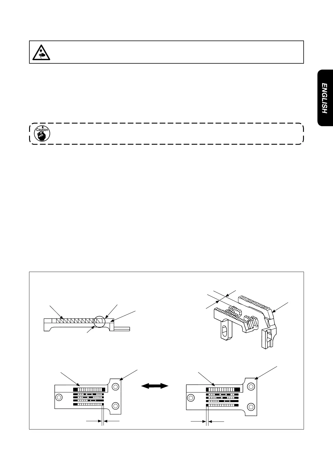 (4) Adjustment of vertical height of main feed dog and differential feed dog