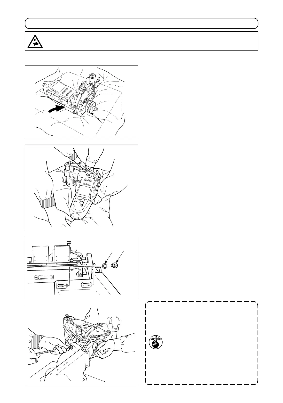 Führen Sie die Installationsarbeit des Maschinenkopfes unbedingt mit zwei oder mehr Personen