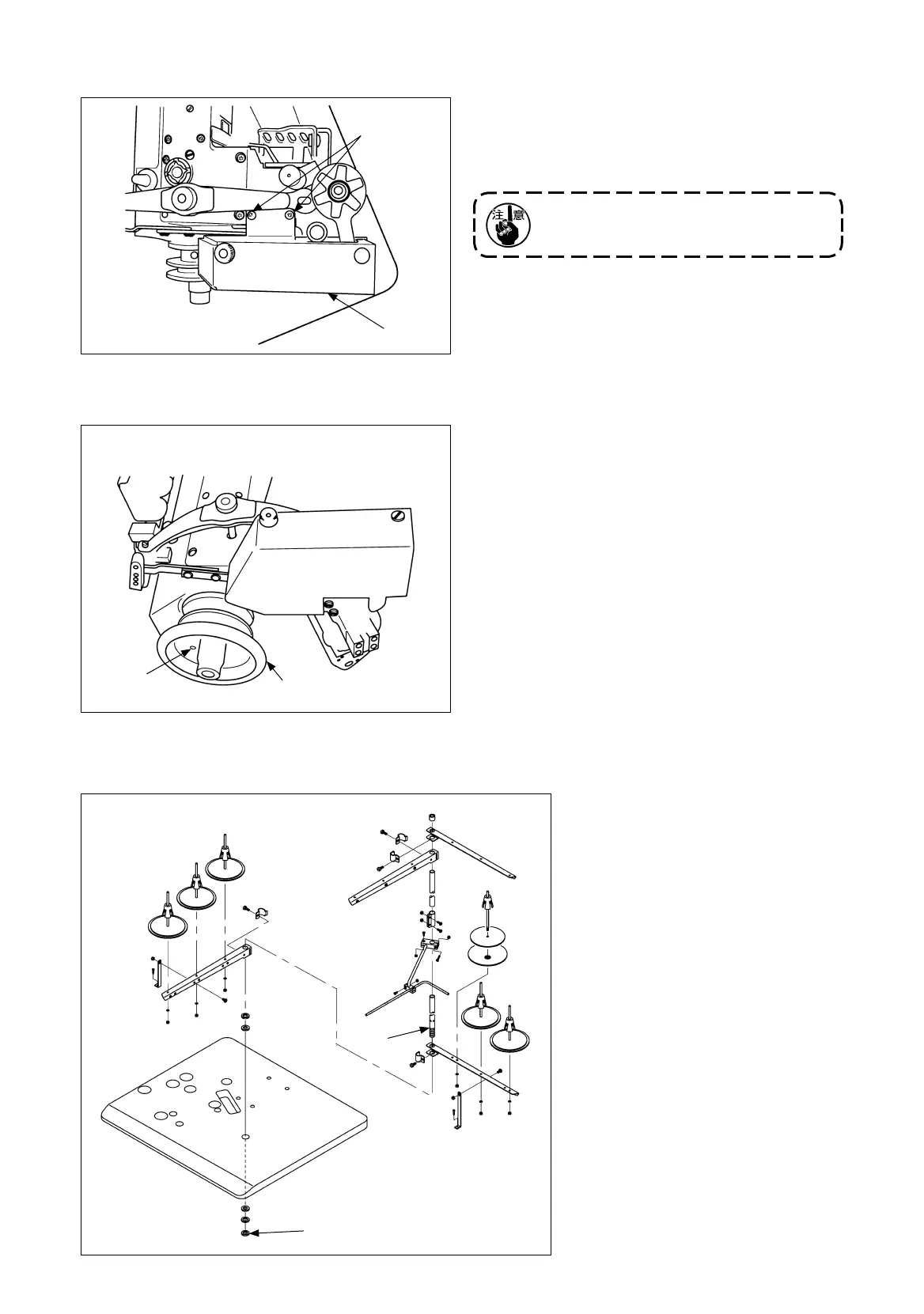 1) 糸立装置を図のように組付け、テー