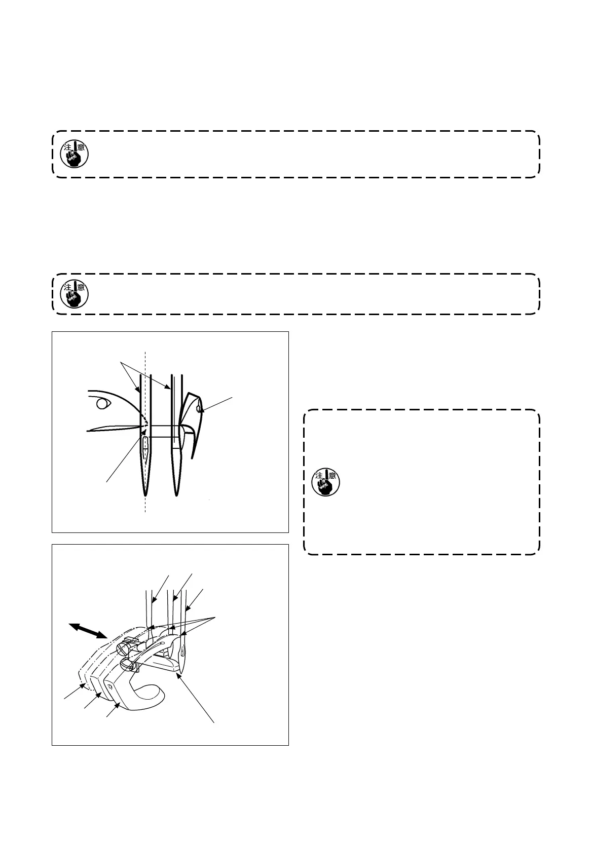 2. ルーパー返り量が少ない又は多い場合は、目飛び、針折れ、糸切れの原因になります。