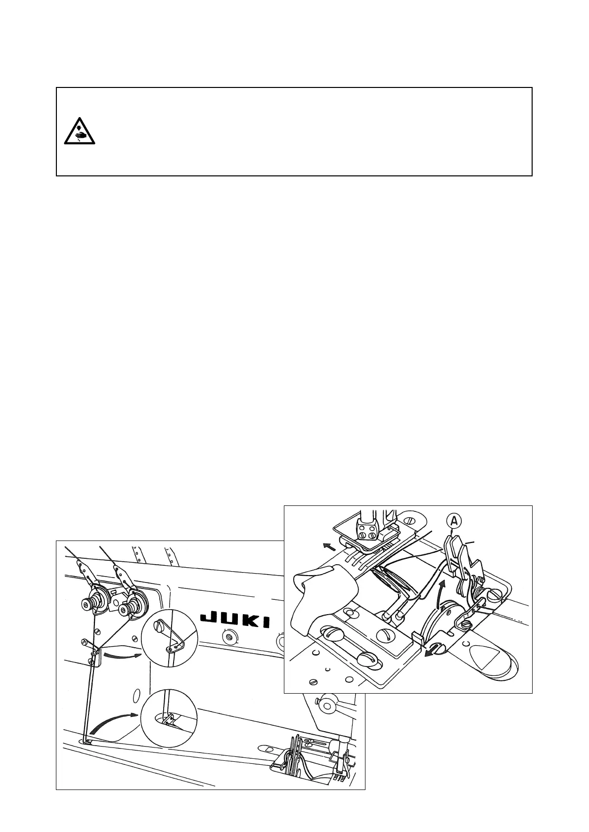 1. 糸調子案内板には図のように巻いて通して下さい。撚りの強い糸,ピッチが大きい時は、2 ヶ所巻