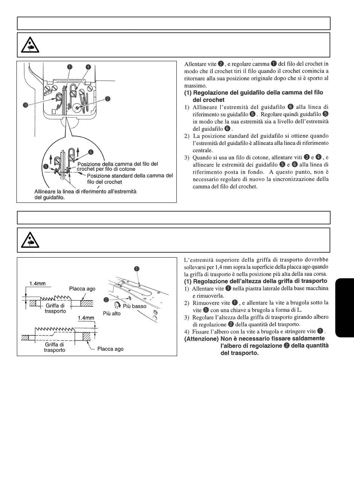 12. REGOLAZIONE DELLA CAMMA DEL FILO DEL CROCHET