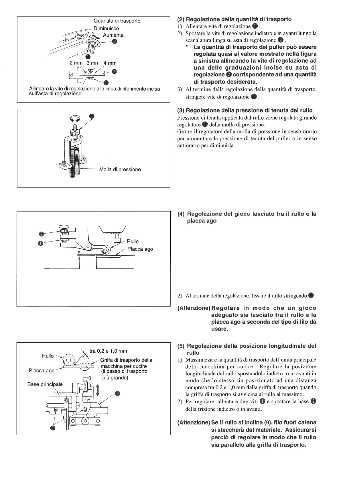 Regolare lo spazio lasciato tra il rullo e la placca ago (rullo
