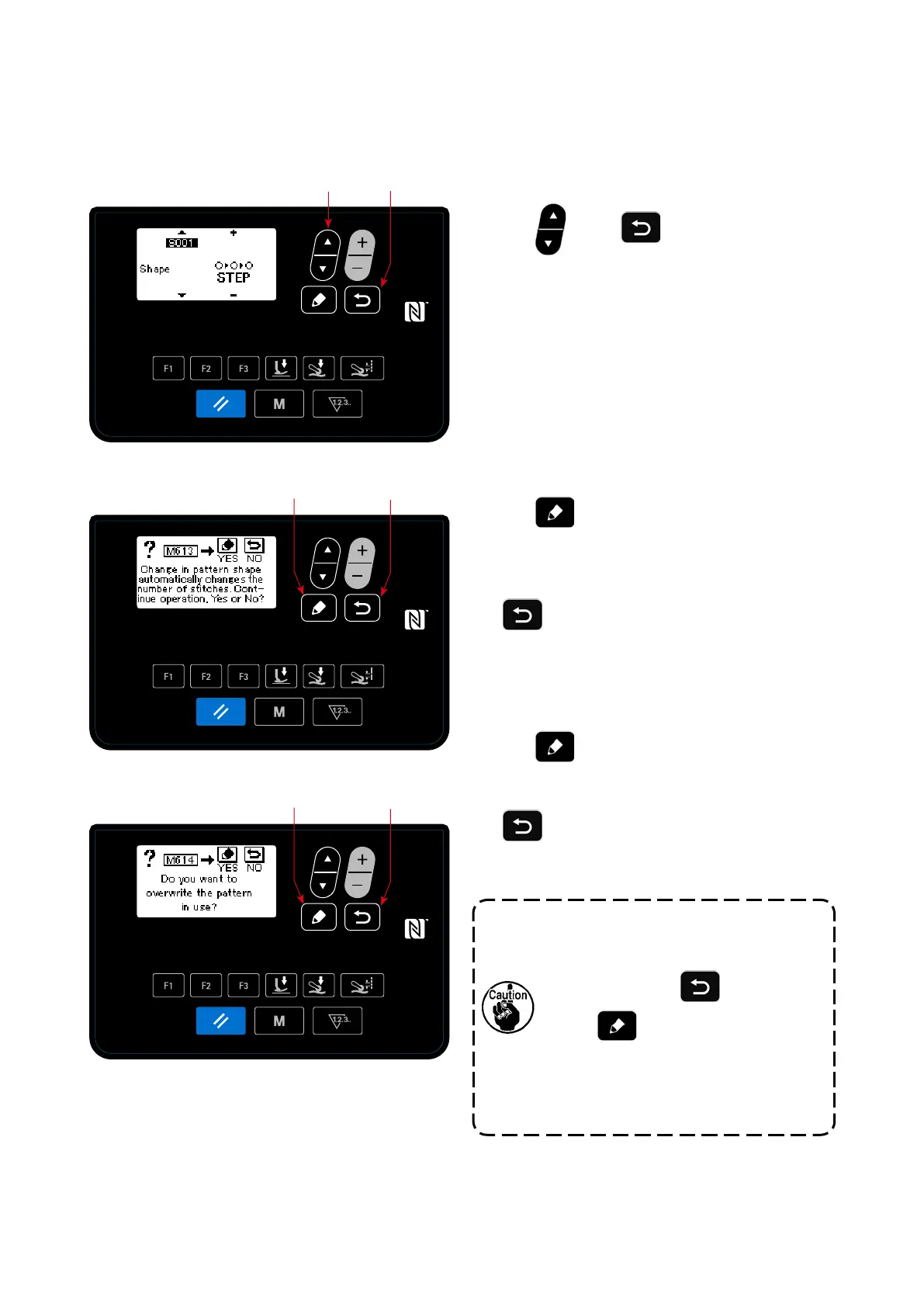 No step sewing pattern is registered in the sewing machine at the time of purchase. It is, therefore, neces-