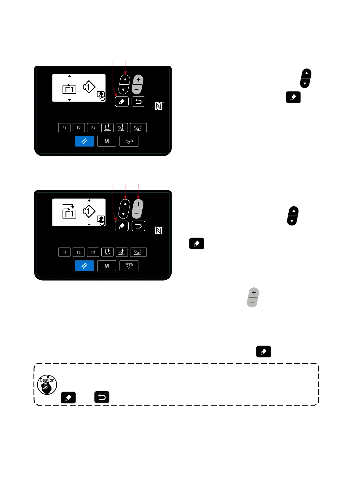 In this case, the F key registration data selection screen will return to the sewing screen if the