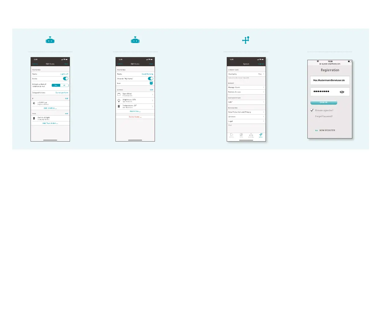 off light” and “Lower blinds”.