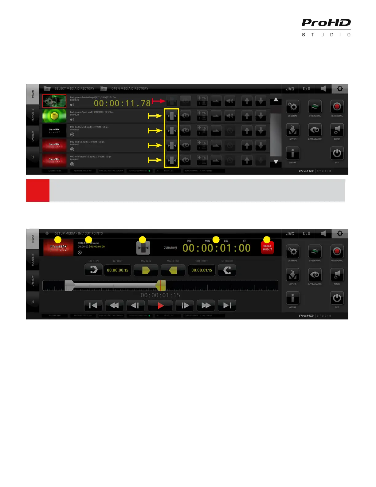 setup the media playback In/Out points to prepare your media for playback in your live production.