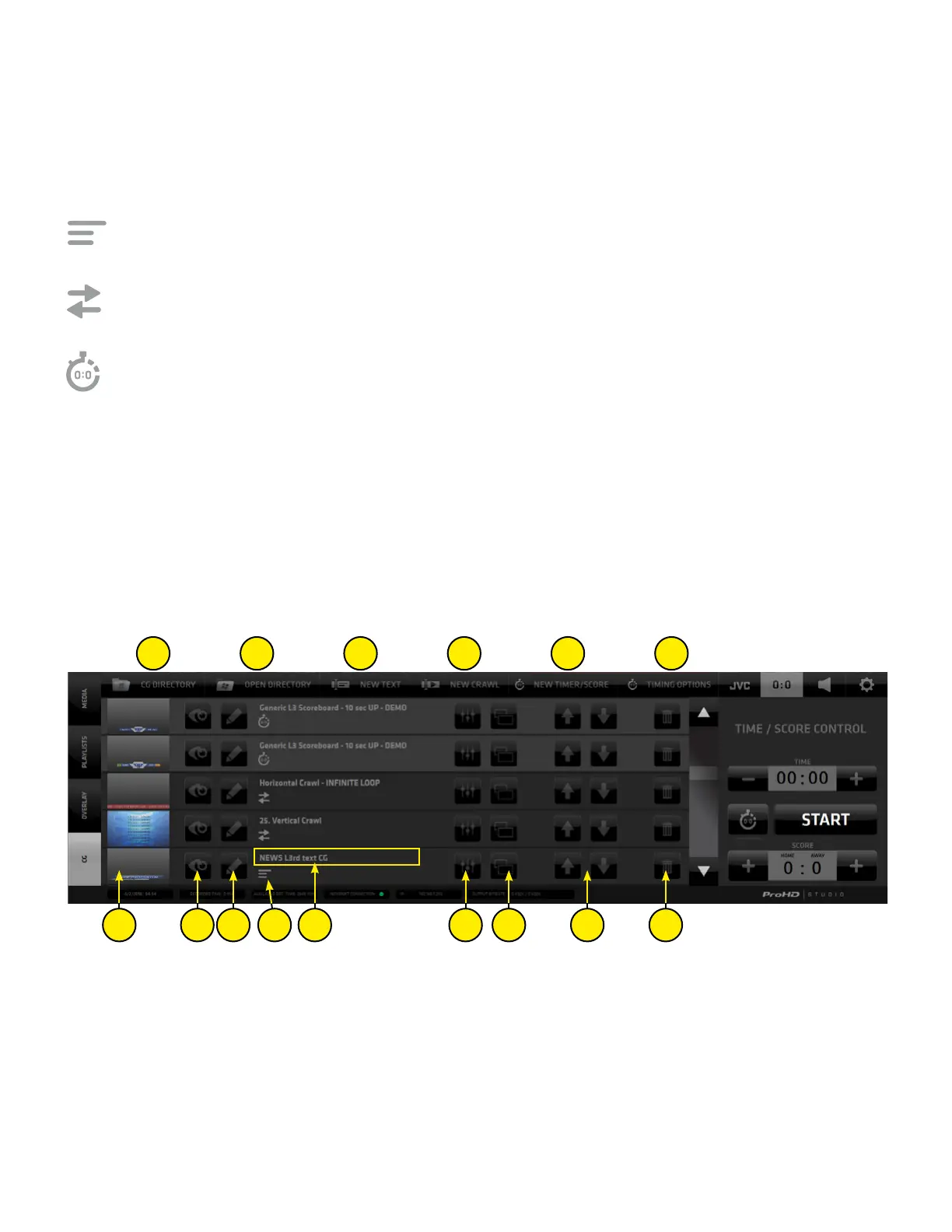 The CHARACTER GENERATOR - CG enables you to insert editable real time graphics into your live PGM.