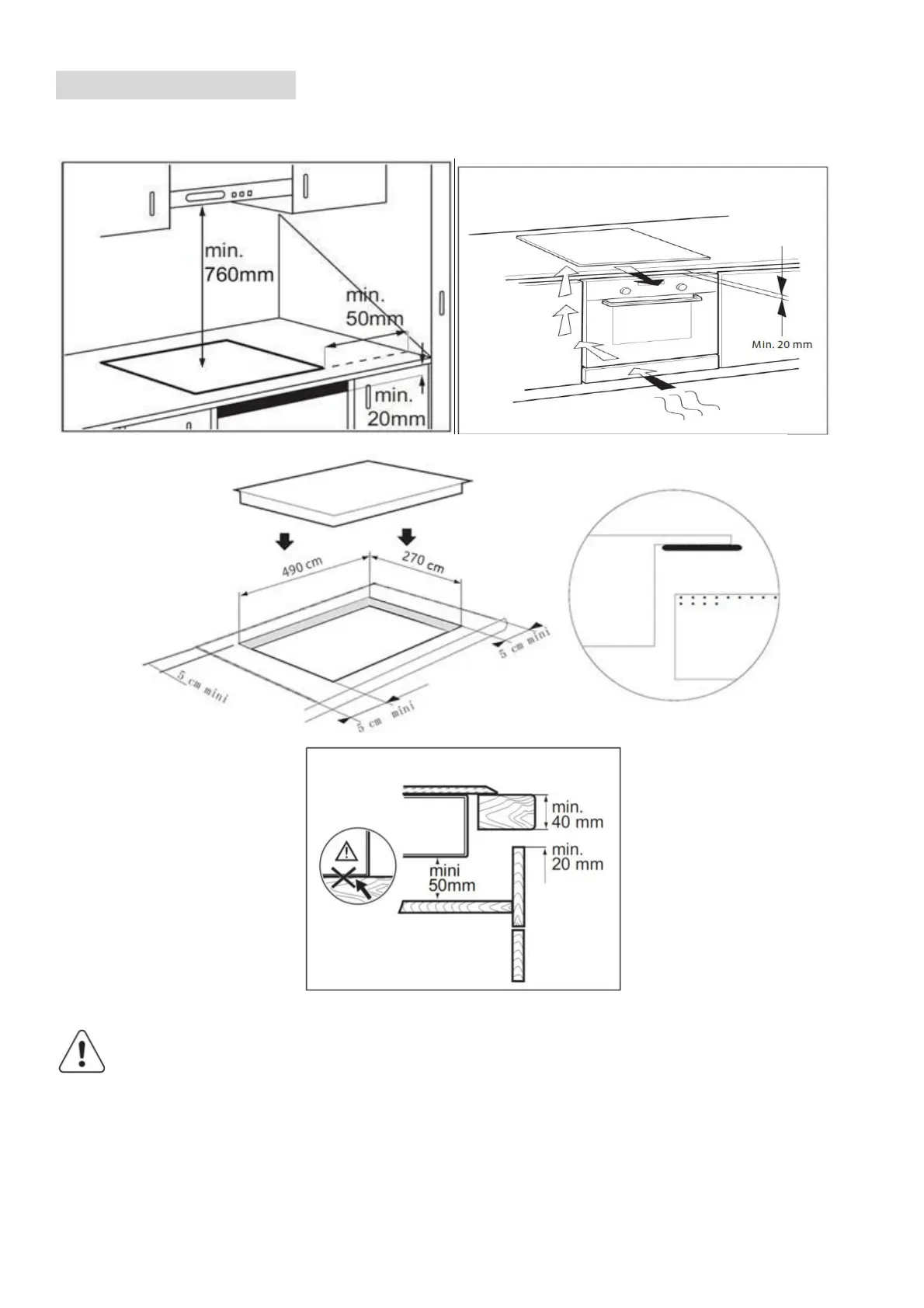 ! Bauen Sie das Kochfeld nicht über einem Geschirrspüler oder einer Waschmaschine ein, damit die
