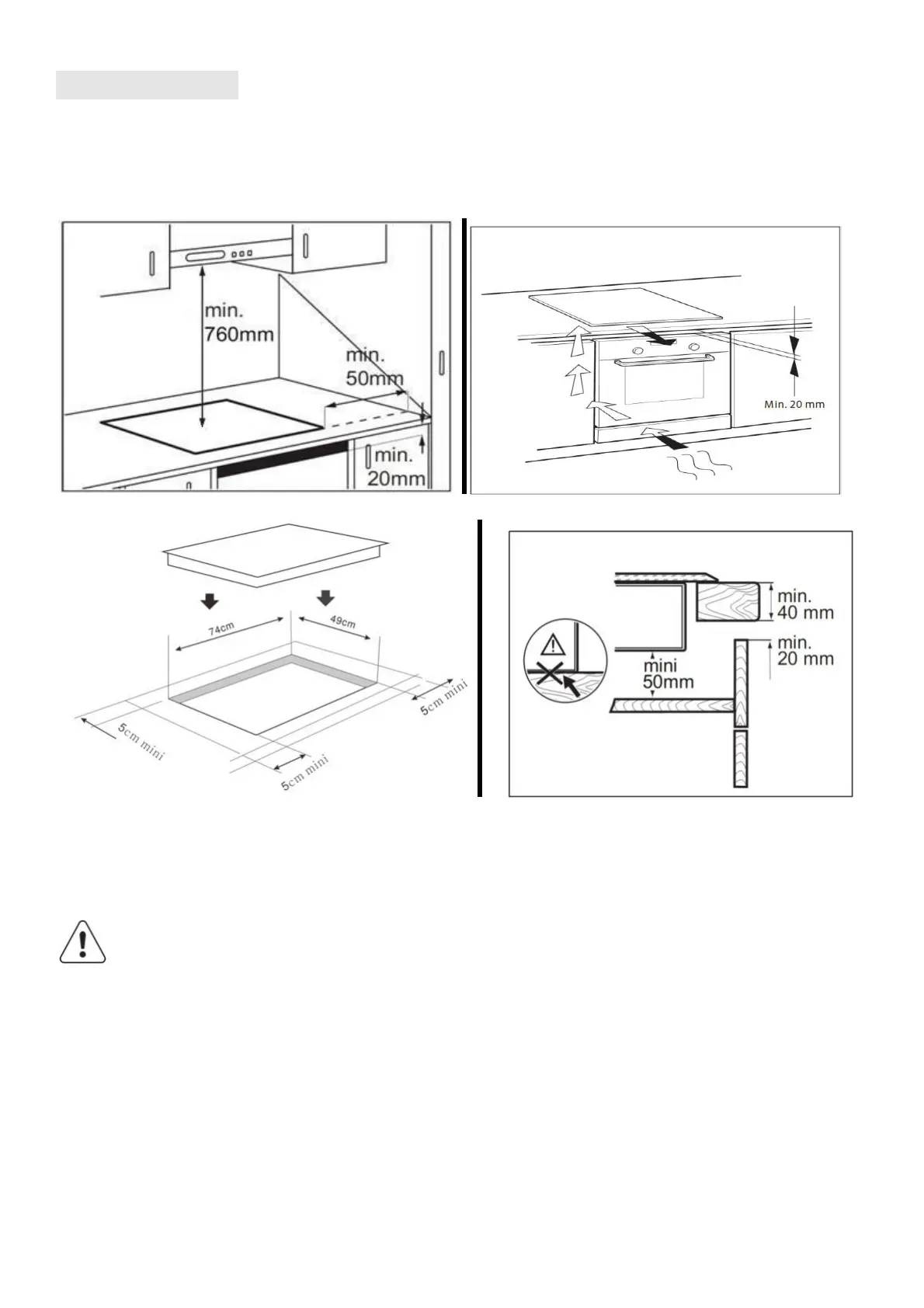 ! Do not install the hob above a dishwasher or washing-machine, so that the electronic circuits do not