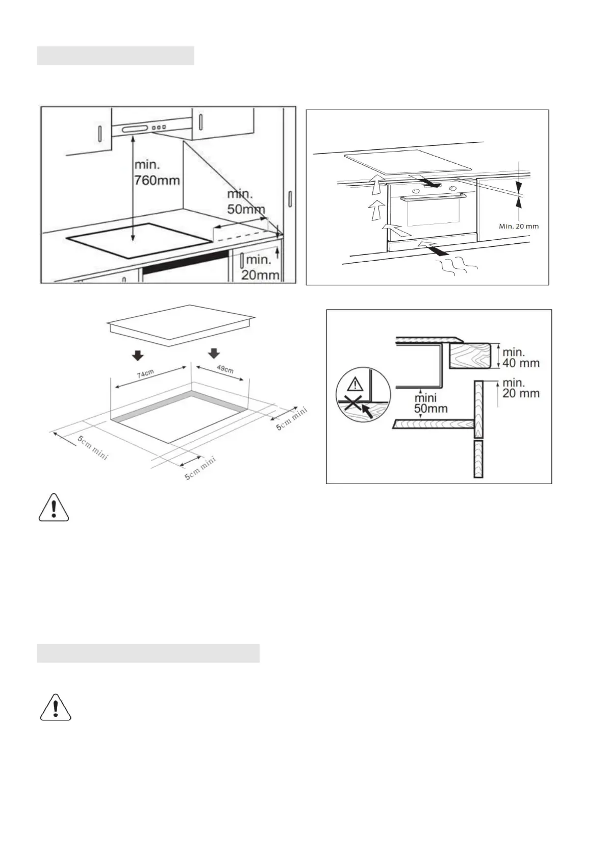 ! Bauen Sie das Kochfeld nicht über einem Geschirrspüler oder einer Waschmaschine ein, damit die