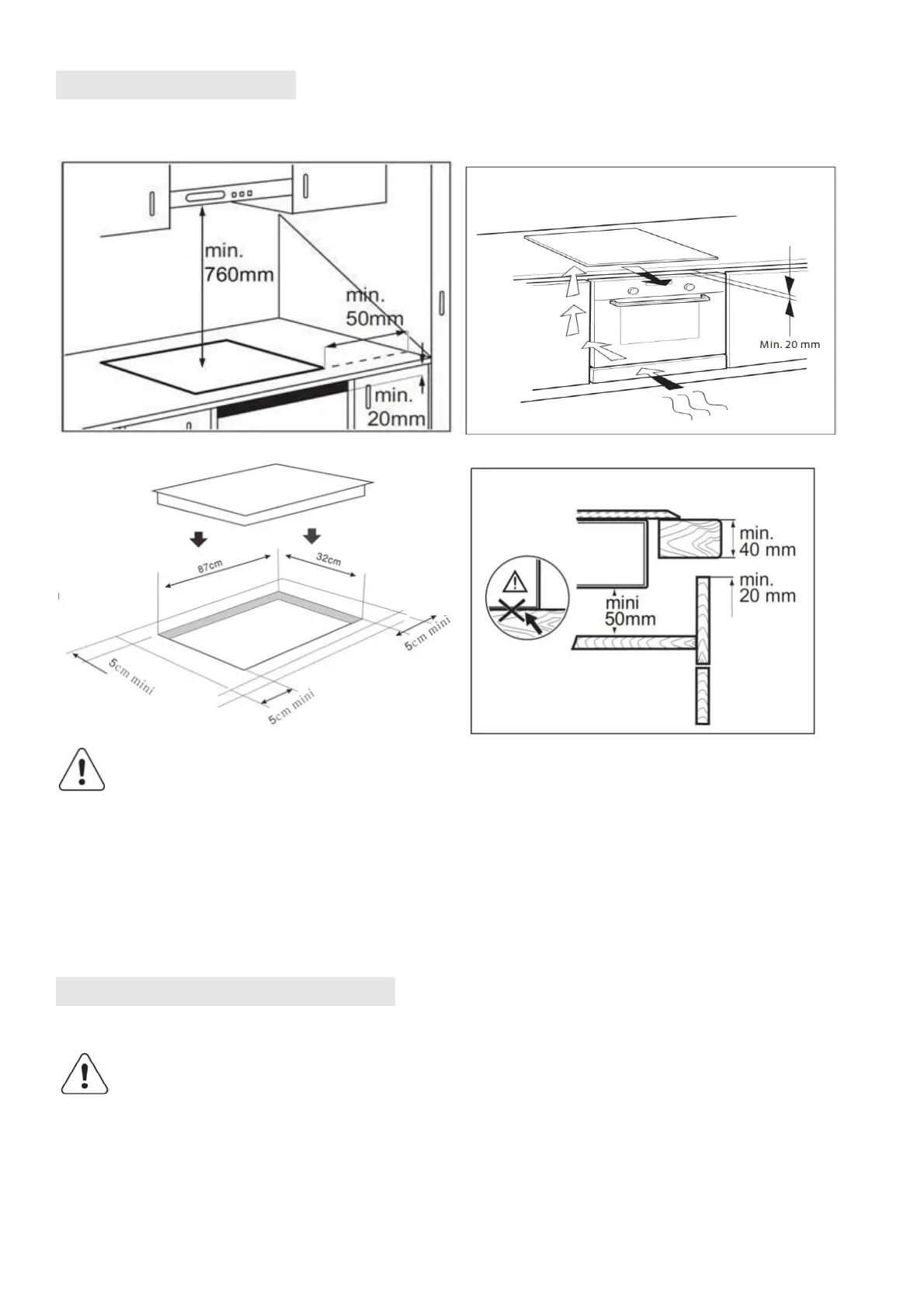 ! Bauen Sie das Kochfeld nicht über einem Geschirrspüler oder einer Waschmaschine ein, damit die