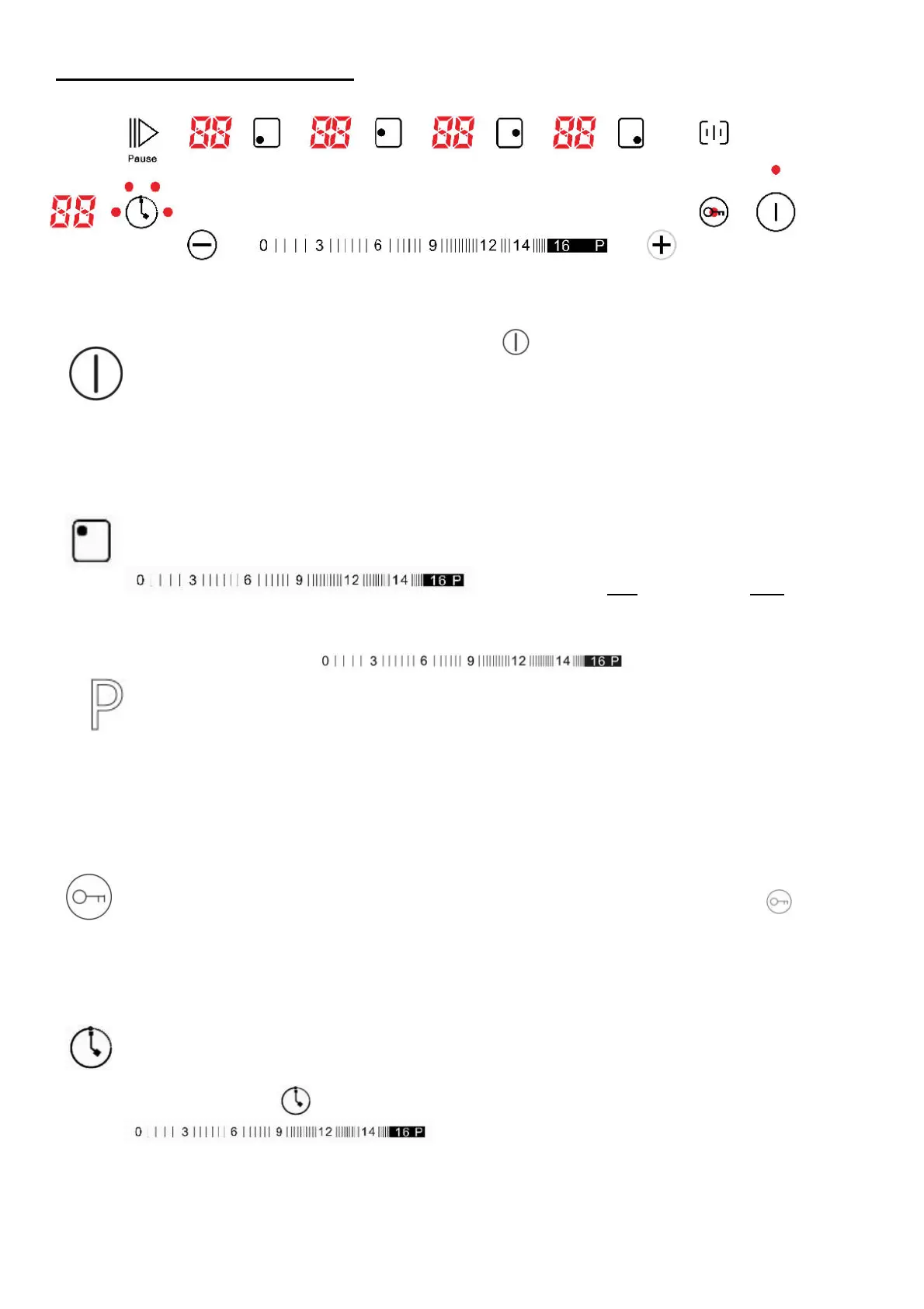 Jede Kochzone verfügt über verschiedene Leistungsstufen, einstellbar mit den: