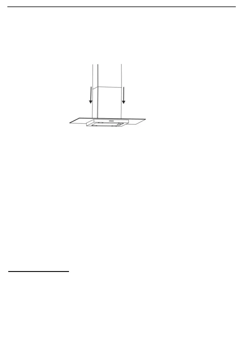 Entfernen Sie den Aufhängehaken und schieben Sie dann den unteren Kaminabschnitt nach unten, bis er am