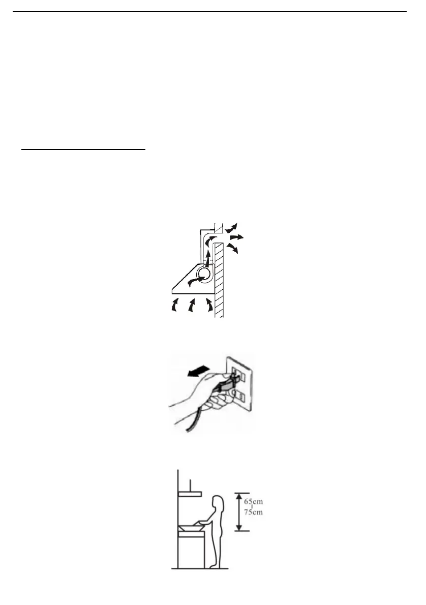 f.The cooker hood should be placed at a distance of 65~75cm above the cooking plane for best effection.