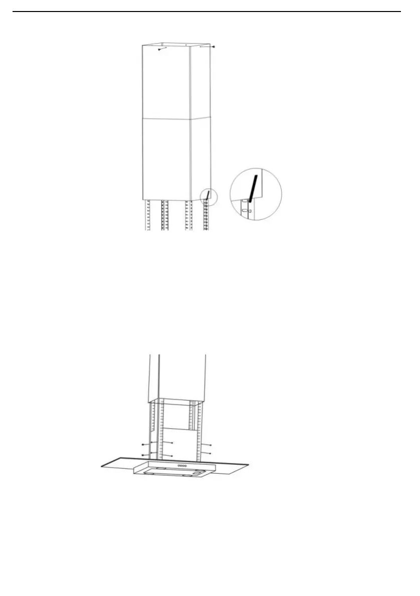 Fix the upper chimney section to the hanging plate, using the 4×self tapping screws(4*6mm).