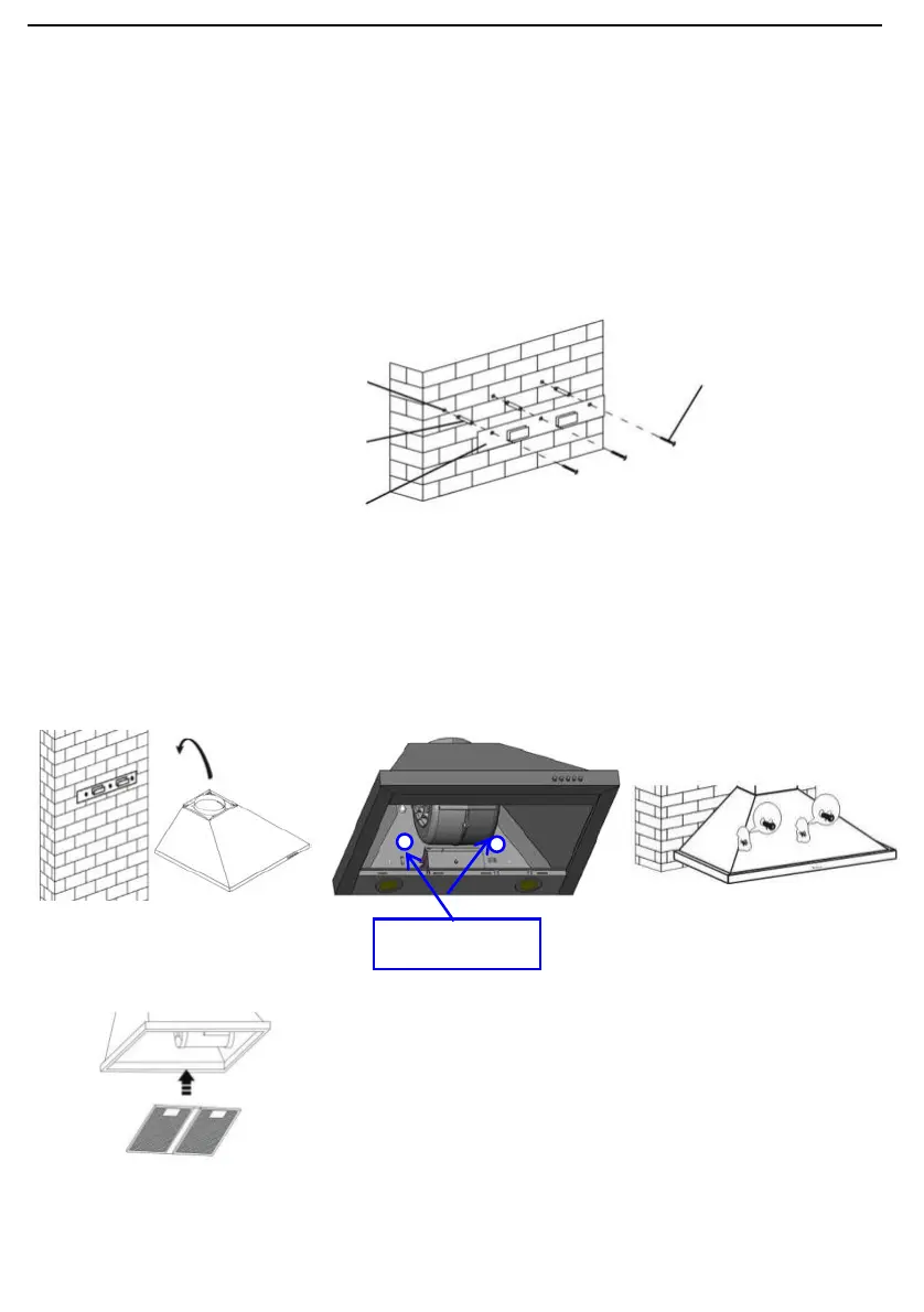 für 2 Löcher auf der Rückseite der Dunstabzugshaube. Entfernen Sie dann die Dunstabzugshaube zur Seite.