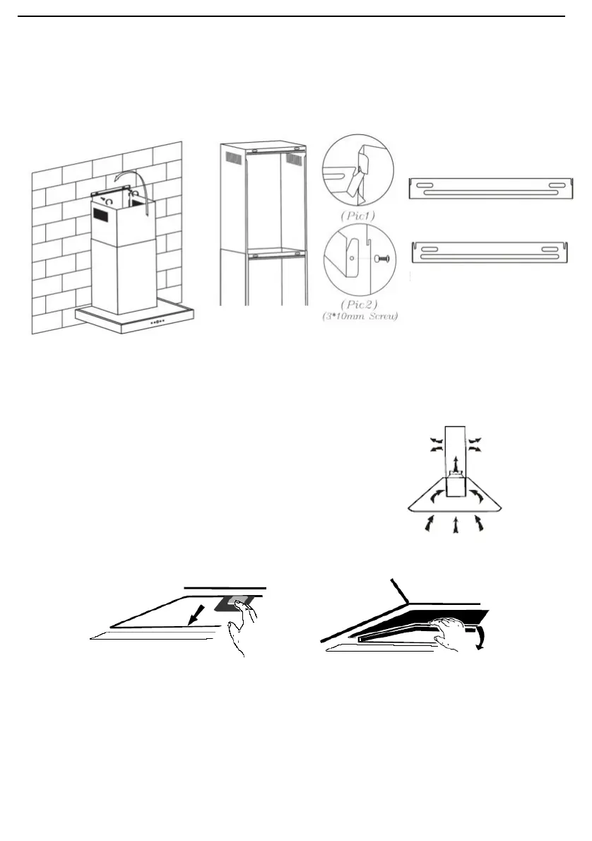 Der obere Kamin kann mit Haken und Schrauben an der Platte I befestigt werden. Der untere Kamin kann nur mit