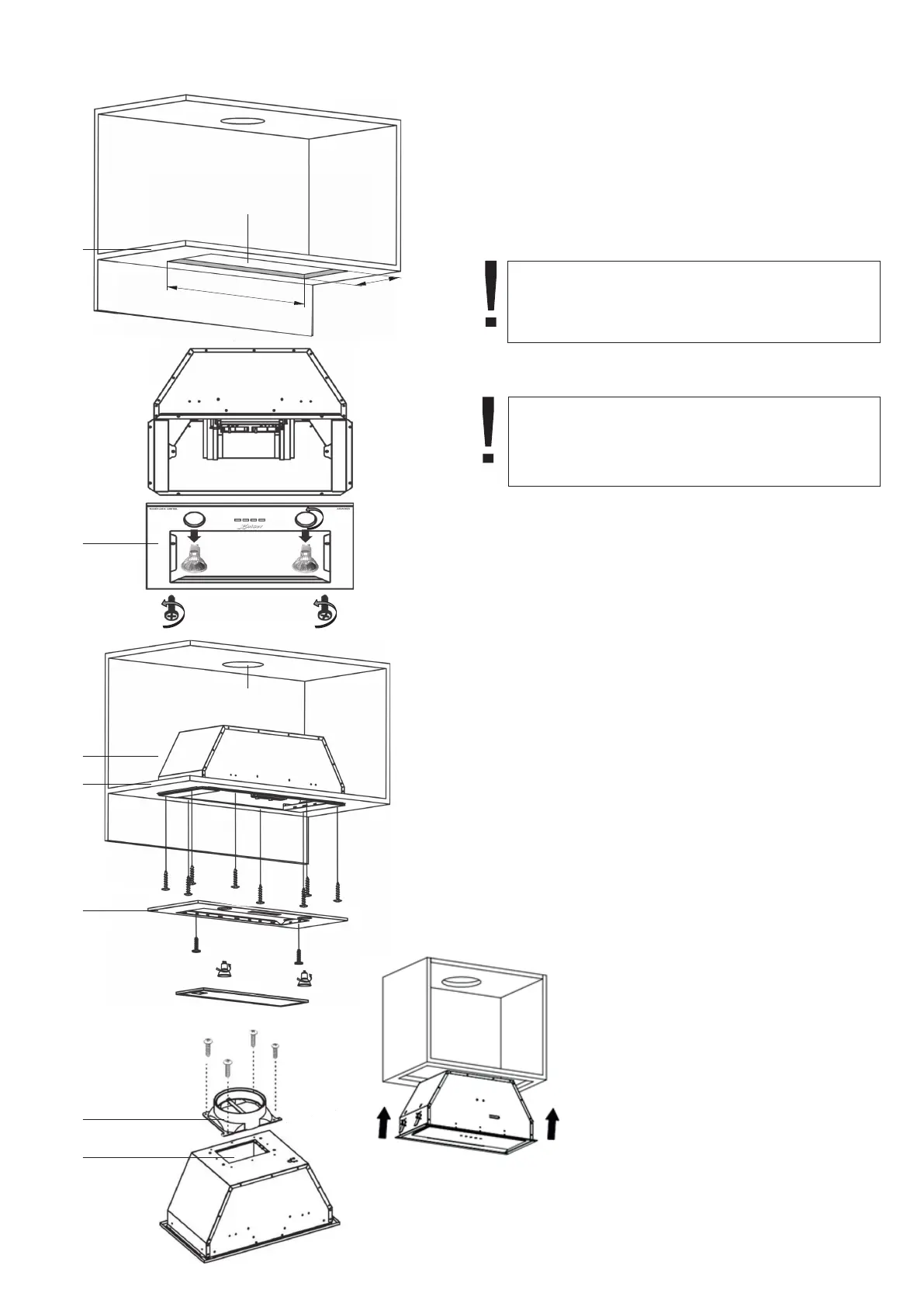 • Mount the cooker hood 4 on the cabinet 1 by 8 screws