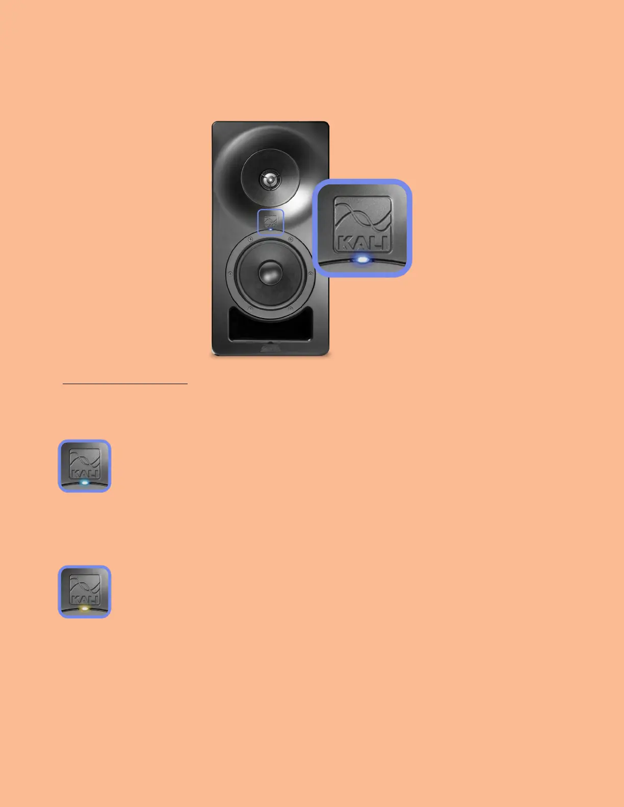 The KALI logo over the woofer on the SM-5 is a capicitive touch sensor, and controls several
