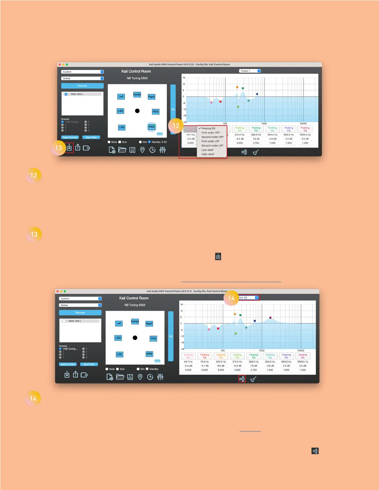 type of EQ that the speaker will process. By default, they are each peaking EQs.