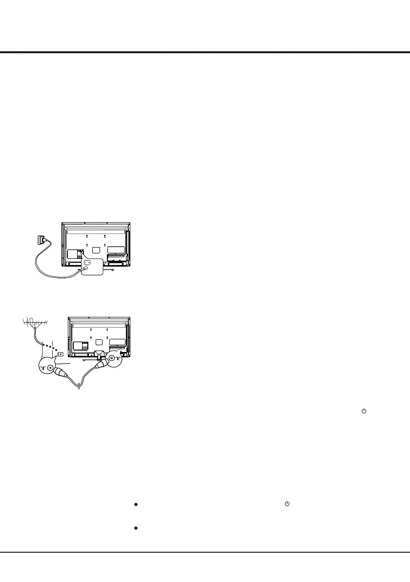 2. Connect the power cable FIRST to the television, THEN to a mains socket.