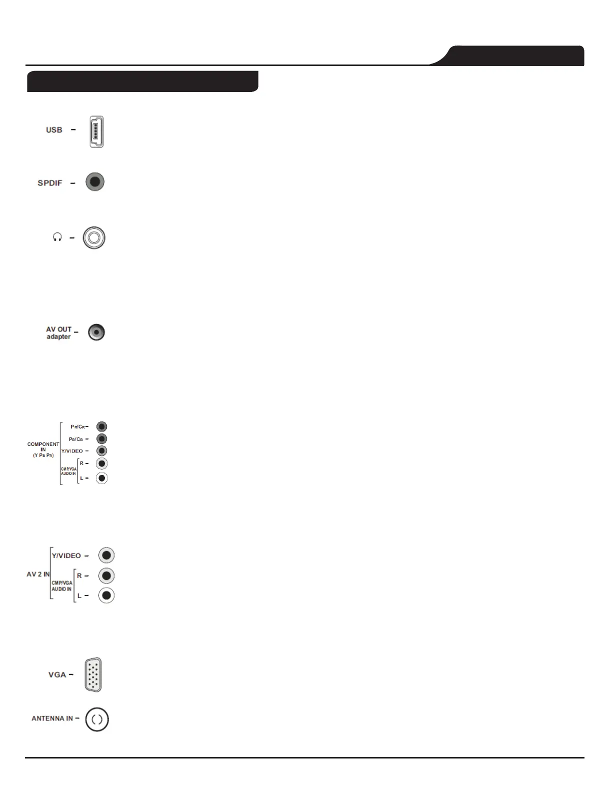 Esta conexión se puede utilizar para conectar la antena o cable.