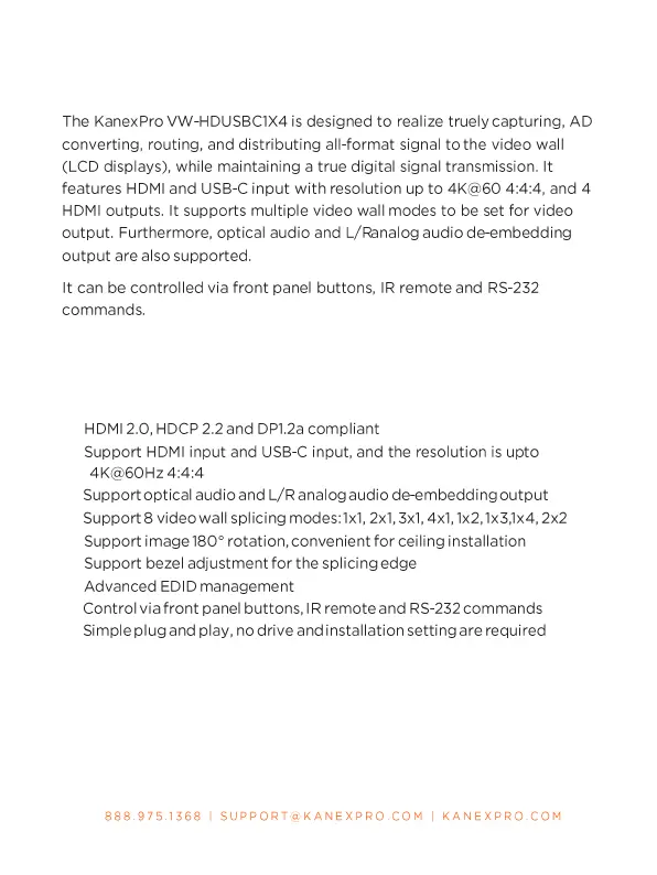 Bekijk gratis de handleiding van KanexPro VW-HDUSBC1X4, stel vragen en lees de antwoorden op veelvoorkomende problemen, of gebruik onze assistent om sneller informatie in de handleiding te vinden of uitleg te krijgen over specifieke functies.