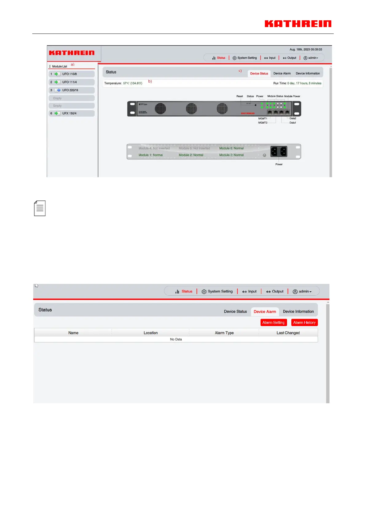 Alarm setting lets the user set the alarms, logs, SNMP Trap, and different alarm parameters the