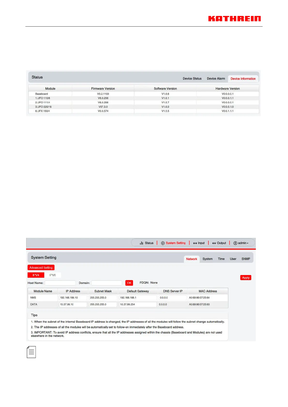 Note to avoid IP conflict when you set the baseboard IP address. The occupied IP section will
