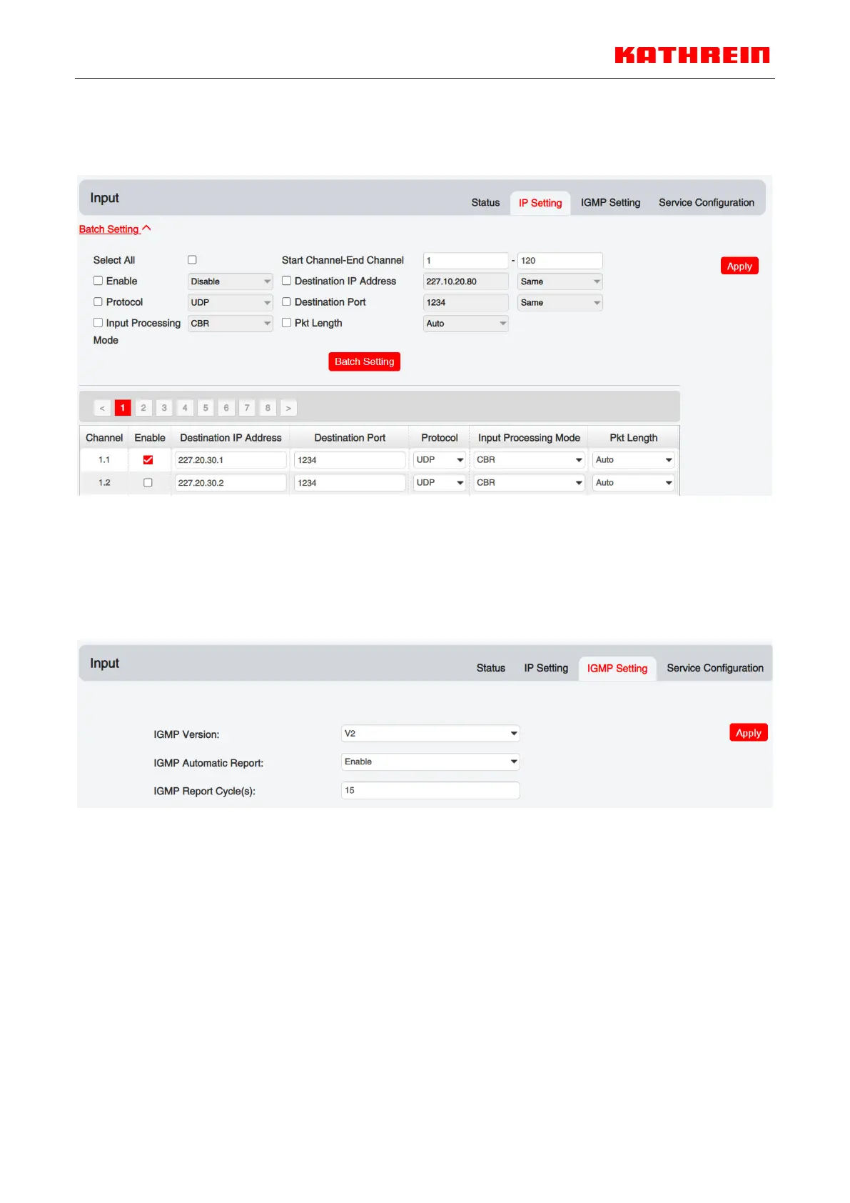 Input >IGMP Settings
