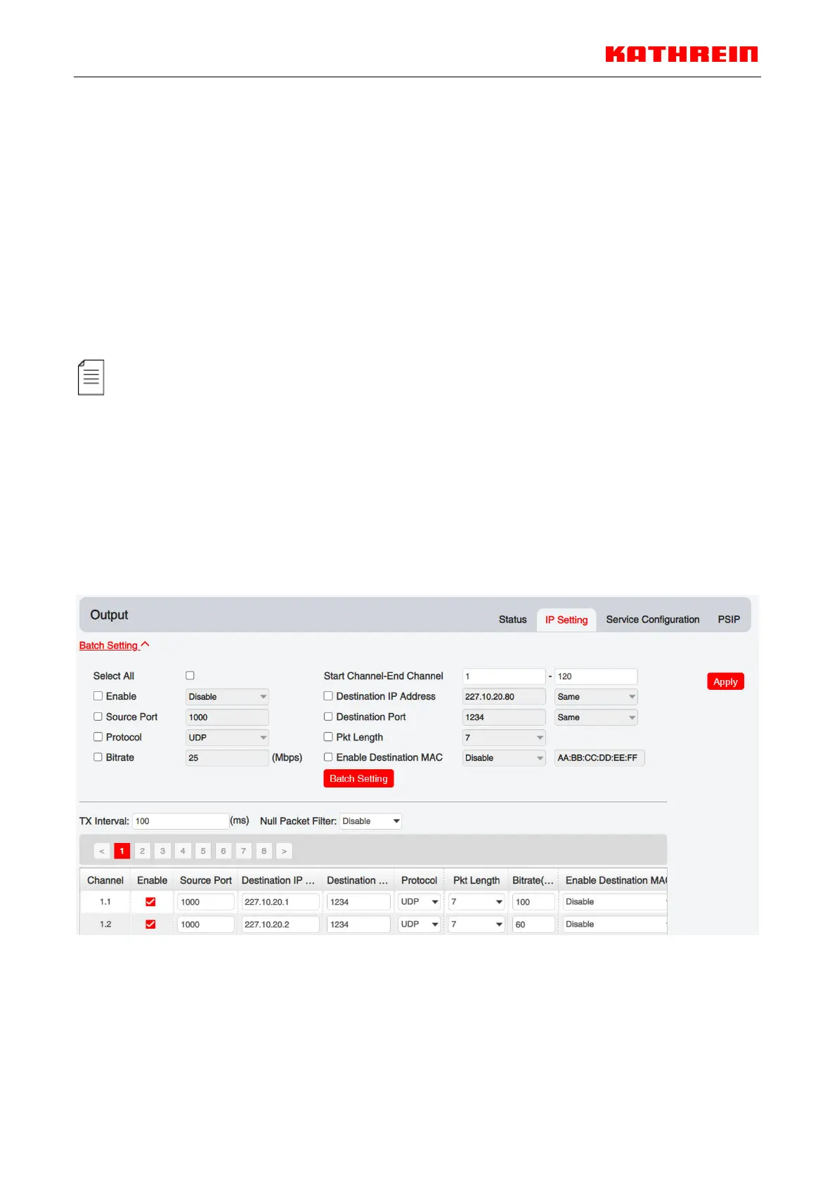 Batch Setting of IP output channels is also similar to that of setting IP input.