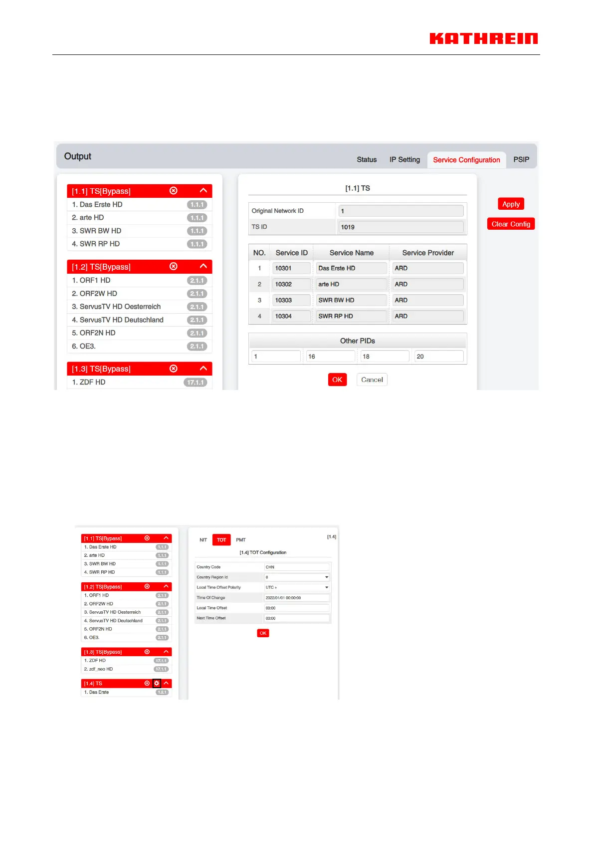 TS setting: Click TS line (the red area) to configure Original Network ID, TS ID and each